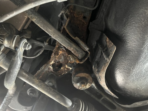 ブレーキパイプ破裂&フレームのサビ腐食進んだランエボVが2次レッカー入庫