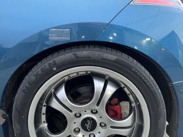 リアバンパーはプラスチック素材なので干渉する部分をオーナーさんご自身でカットできたそうですが、リアフェンダーは鉄板なので上手くできる自信が無いという事でした。