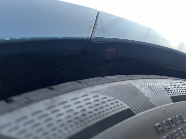 路面のアップダウンでリアタイヤがリアフェンダーと干渉して少しずつリアタイヤが削れてきてしまっているようで、この干渉を無くしたいとの事でリアフェンダーの爪切り加工ご依頼を承りました。
