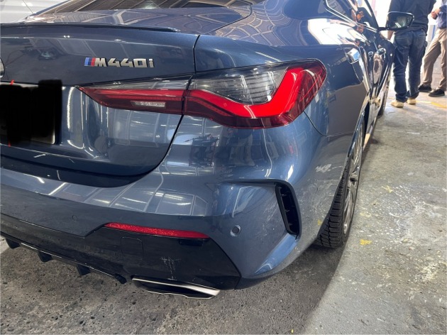 BMW M440i リアバンパーボトム(黒塗り分け塗装部分)の傷を板金塗装