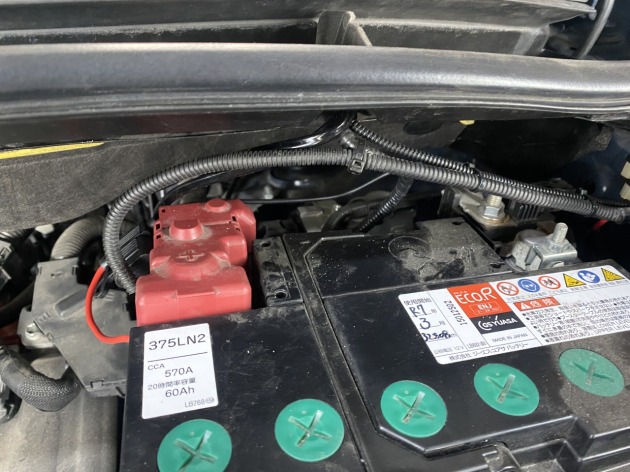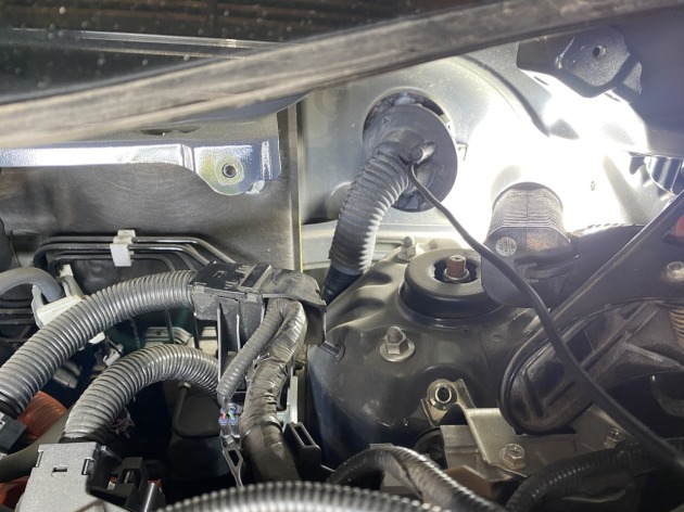 ボンネットの開閉に影響の無いようにボンネットヒンジからワイパーカウル内を通します。