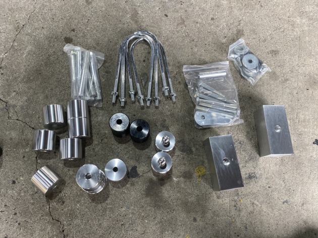 リアはリーフスプリングに2インチブロックを取り付け車高を上げました。