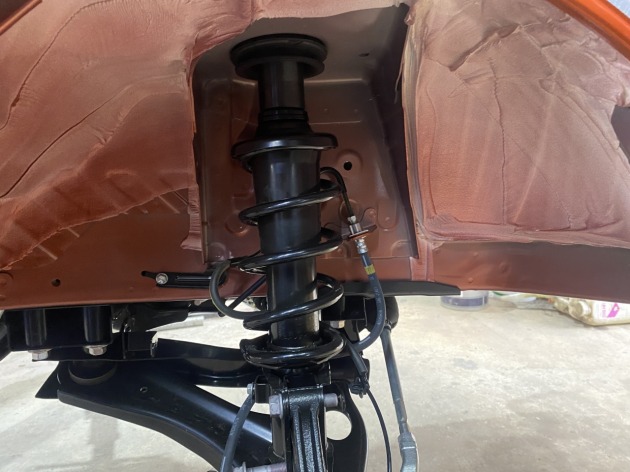 フロントは純正ショックのアッパーマウント部を延長するお手軽仕様でした。