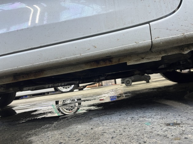 なぜか?右側の「サイドシルの耳」に錆でグサグサになっている所があり、『タイヤ交換をする時に気になっていて、だんだん酷くなってきたので修理しようかな...』という事で修理ご相談をいただきました。