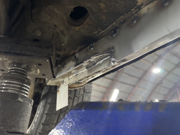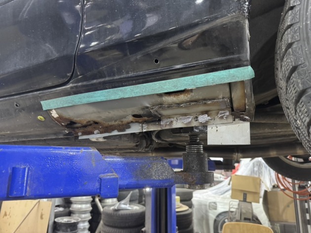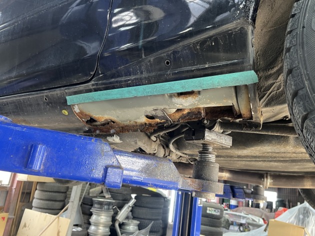 左リアのジャッキアップポイント辺りに空いた錆穴を修理ご依頼いただきました。