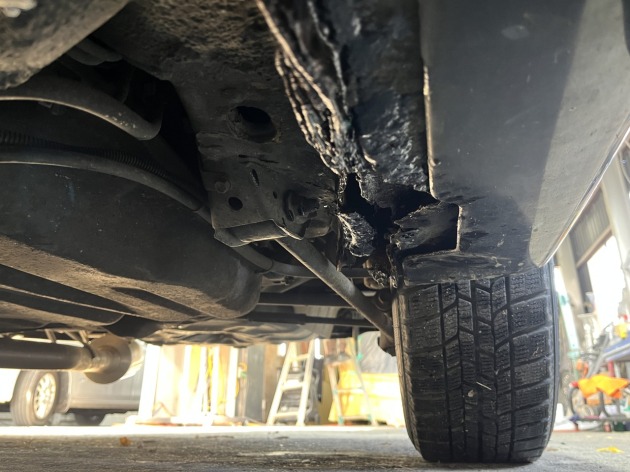これまではDIYで錆の処置をしながら維持してきたそうですが、とうとうリフトで上げる事ができない(店舗での作業を断られてしまう)状態になってしまったようです。