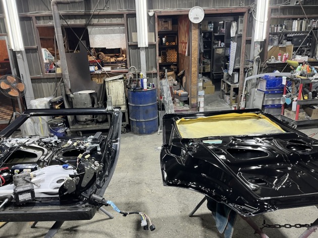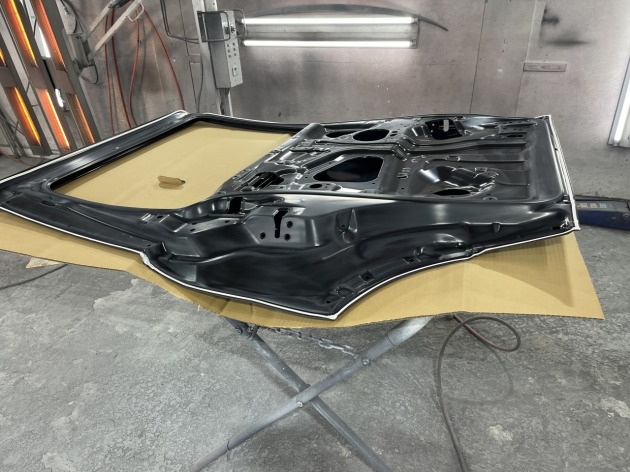 オーダーした新品のスライドドアとドアガーニッシュが入荷したら、塗装作業を進めていきます。