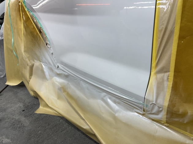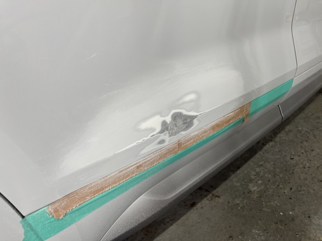 ドア下側のガーニッシュに損傷は無いので、ドア本体部分だけの板金塗装で済みそうです。