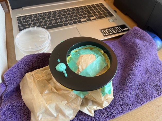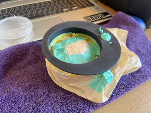 取り外し可能なパーツはすべて分解し、再度マスキングを行い、いよいよ塗装工程へ入ります。