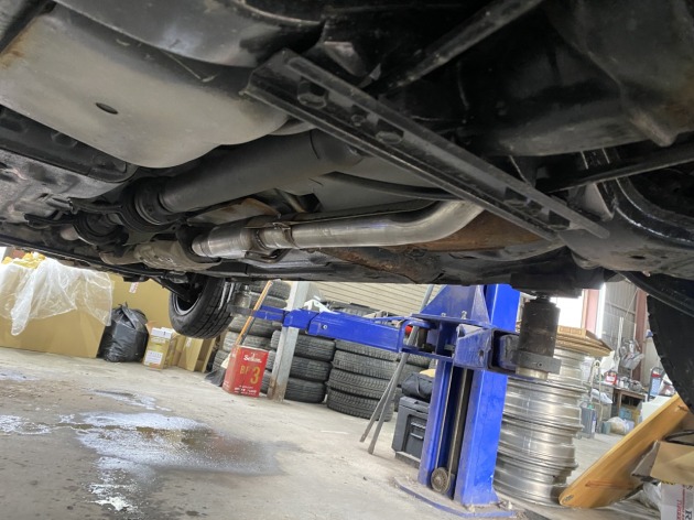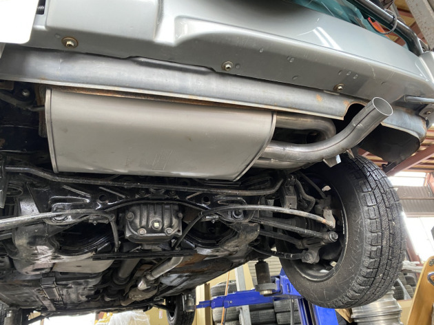 ラシーンの下回りを打った衝撃で折れたマフラーを新品交換修理!