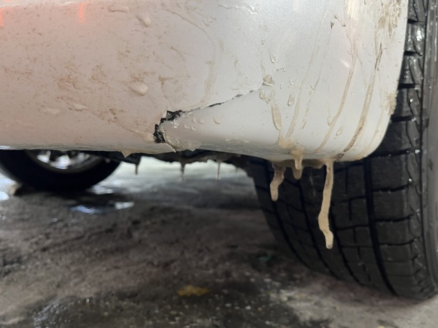 この時期は積雪の影響で道路幅が狭くなり、大きなお車の場合、曲がりきれずに前方の雪山を掠めてしまうケースも少なくありません。