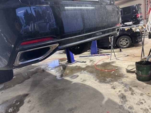 レクサスLS500WALDリアアンダースポイラー/マフラーカッター溶接取り付け