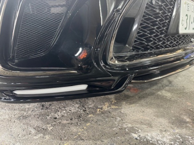 じつはお車の納車からお預かりまでの間にフロントスポイラーの割れ修理と納車前のエアロパーツ取り付け時に