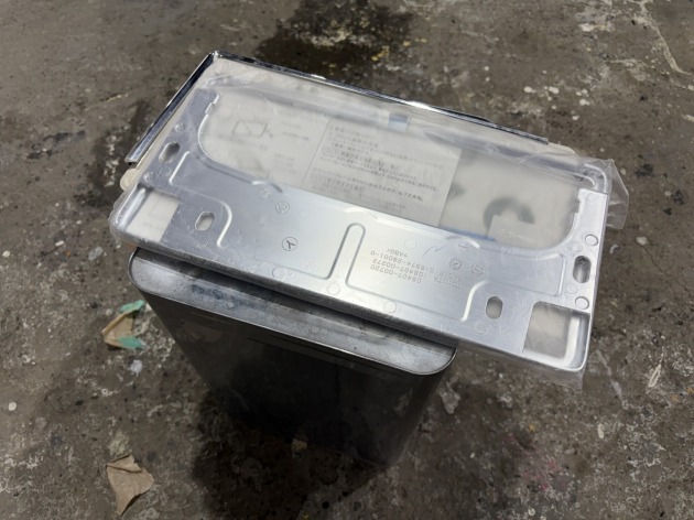 新品のナンバーフレームも届きましたので、交換します。