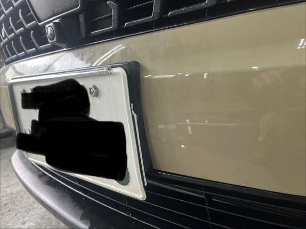 - ナンバープレートの横付近に擦り傷がついており、ナンバーフレームも割れていました。