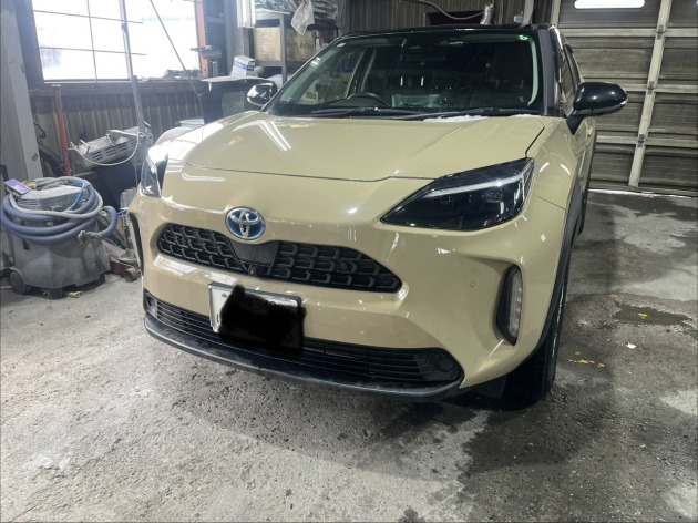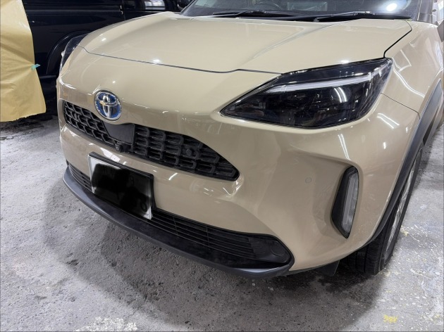ヤリスクロスのフロントバンパー上部変形箇所を部分的に板金塗装