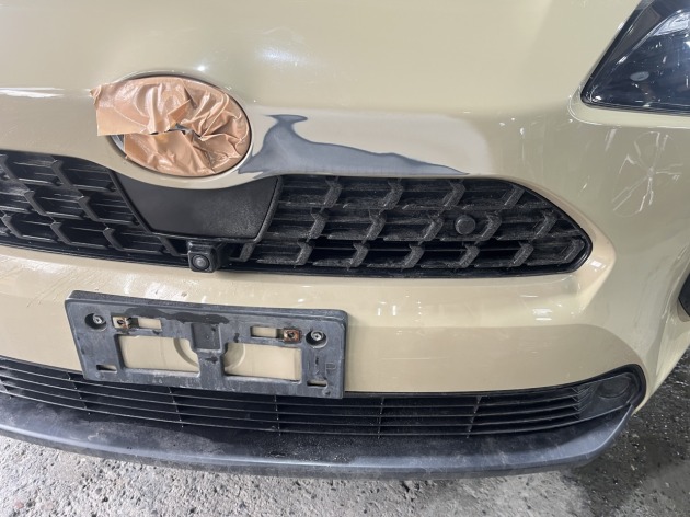 フロントバンパー本体に大きなダメージはなく、損傷は局所的です。