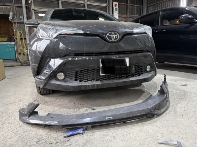 トヨタ C-HR フロントスポイラー破損の為修理依頼入庫