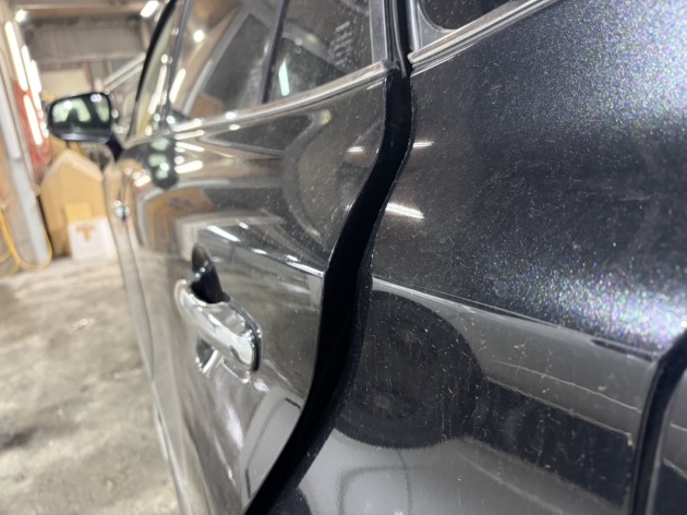 トヨタ ハリアー タッチアップ補修でのご入庫です。 小さな傷が気になるとのことで、 ホームページをご覧いただきお問い合わせくださいました。 左フロントドアおよびリアドアに、 色欠けが確認できました。