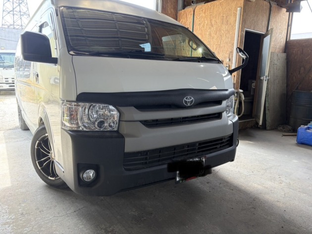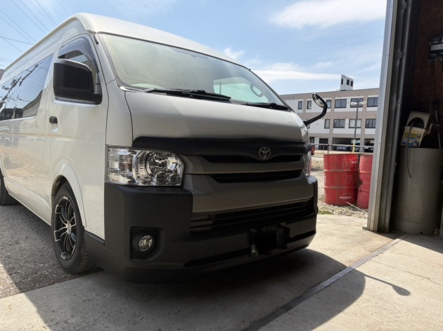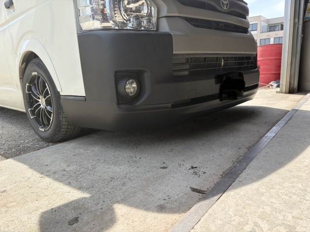 ハイエースワイドに415コブラ製フロントスポイラーをラプターライナー塗装して取り付け 2026年4月10日 トヨタハイエースワイドに「415COBRA(415コブラ)製フロントスポイラーをラプターライナー塗装して取り付け」ご依頼をいただきました。フロントスポイラーはラプターライナーで塗装を施し、耐久性と質感を高めた仕上がりにした上で、車体へしっかりと取り付けを行います。独特のザラっとした質感が、ワイルドで存在感のあるフロントフェイスになりました。この度はご依頼いただき、誠にありがとうございました。ドレスアップ・カスタムや塗装のご相談もお気軽にお問い合わせください。