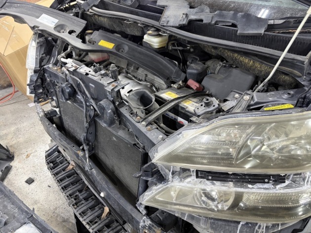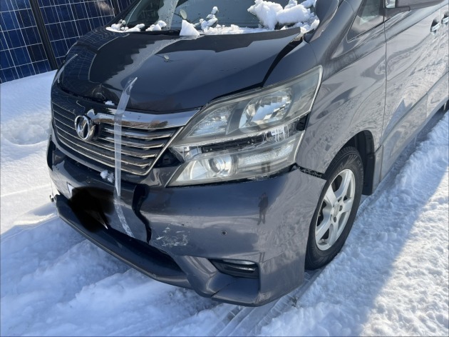 冬の事故入庫の車輌トヨタヴェルファイアが