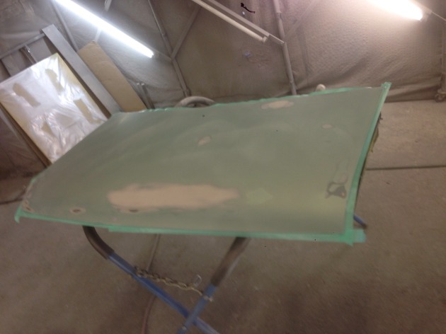 今回はボンネットを外して作業します、同時に小さな凹みも板金修理!