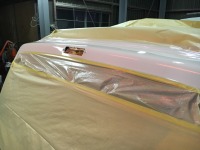Jeepチェロキー 追加作業! リヤゲートのガラスの上側(屋根の続き面)の色剥がれがすごく鉄板が出てきてる所もあります。 実はぶつける前からこちらも気になっていて、バンパーを直す事になったのでどんなも