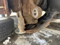 足回りの異音点検ご依頼で、スズキエブリイが入庫しました。 点検すると、左フロントのハブから異音が出ていました。 新品のハブベアリングを取り寄せて、交換します。 油圧プレスで古いベアリングを抜き、新しい