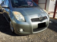トヨタ2代目ヴィッツのRS 遠くからわざわざご来店いただきありがとうございます。 今回の依頼は フロントスポイラー脱着後のバンパーの縁(みみ)にあいているビスの穴埋めの補修と、 バンパーに残った両面テ