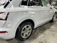 年末の飛び込み修理ご依頼をいただきました。 雪山にぶつかってスバルWRXのフロントバンパーが一部外れてしまったようで、大至急でご来店です。 バンパーステーが曲がっているようなので、一旦フロントバンパー