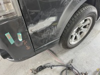 トヨタ200系ハイエースのスライドドアとリアフェンダーの凹み修理ご依頼をいただきました。 スライドドア半分辺りからリアフェンダー後方までガッツリと凹んでしまっております。 リサイクルスライドドアを探し