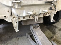 トヨタパッソ 破れたスペアタイヤスペースの後側 バンパーに隠れるし、金額的にも… なので交換せずに溶接修理で対応します。 バックパネルを叩いて近づけ、 端の方からパネルを挟みながら溶接します 溶接後隙