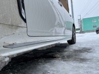 当社ではお馴染みの、冬シーズン毎にモデリスタエアロの取り付け/取り外しご依頼をいただくトヨタクラウンRSです。 今回は、板金塗装修理ご依頼で入庫です。左側面の下部が雪山に当たりドア(フロントドアとリア