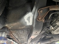 車検が近いため「フロントガラス割れ修理」と「下回りサビ穴修理」のご依頼をいただき入庫中の日産S15シルビアです。 先日「フロントガラス割れ修理」を終え、続きまして「下回りサビ穴修理」作業に進みます。今