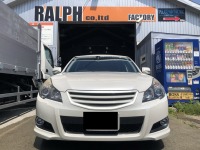 スバルレガシィB4 入庫です 新しくて、セダンで何の車かわからなかった(;_;) イメージしてたレガシィと違ったのもあるけど自己嫌悪 作業依頼は バンパー一体型マフラーカッターのズレを何とかならないか