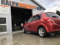 日産ティーダのリアバンパー/左リアドア/左右クォーターを板金塗装