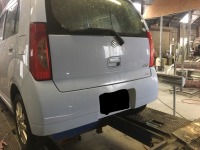 スズキアルトワークスのサビ修理(板金塗装)ご依頼をいただきました。 左リアフェンダーのアーチ部分にサビが浮き出てきています。 まずは、、、作業中にリアバンパーを傷つけてしまわないよう、部分的に外してリ