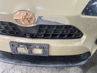 トヨタヤリスクロスのフロントバンパー損傷修理ご相談をいただきました。 ディーラーさんではフロントバンパー新品交換による修理見積りだったそうですが、『交換ではなく板金塗装で修理対応できる所はないだろうか