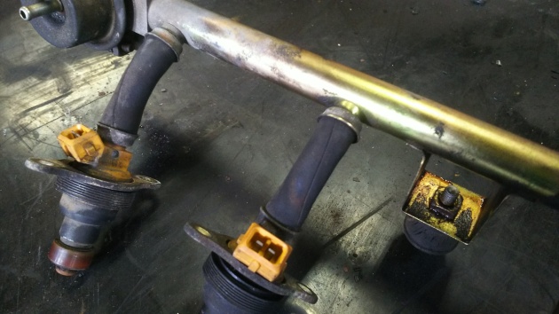 インジェクターとデリバリー間のフューエルホースが縦に亀裂が入って裂けていました・・・