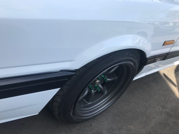 スカイライン R31 フロント&リアフェンダー加工・塗装が完成しました! 2018年11月6日 スカイライン R31 フロント&リアフェンダー加工・塗装が完成しました!タイヤ・アルミに合わせて、フロントとリアフェンダーをたたき出し加工しました。オーナー様の拘りで純正風にたたき出したので、一見では加工がわからないと思います。ツライチでかっこいいです!いつもメンテナンスさせて頂いてますが、とても程度のいいので気持ちよく作業できます!