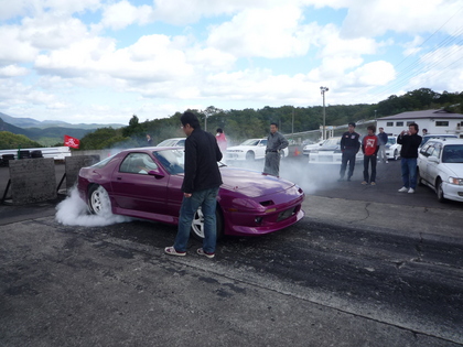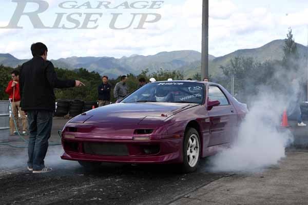 アムクレイド全国大会2009(AMKREAD DRAG BATTLE in 仙台ハイランド) 決勝結果 その4! 2009年10月13日 続いてアムクレイド全国大会2007優勝マシーンCクラス ライズアップ RX-7 S様のFC3Sですが、決勝2本目に絶妙なスタートでかなりの好タイムが期待されましたが、ここで痛恨の壁に接触!残念ながらここでリタイヤでした。決勝5位前日のベストタイムは9.8出発前のメンテナンスの様子はこちらから