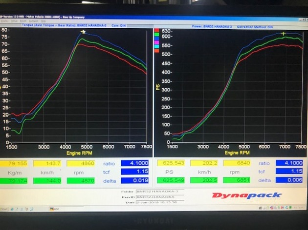 最終的にブースト1.7kで、パワー632PS、トルク79kg出ました!!