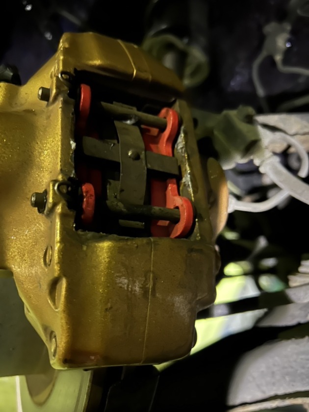 N様の34GTRでしたが『リヤから異音がする』ということでご来店頂きました。 リヤブレーキローターを外してブレーキシューを点検しました。 シューホールドピンが破損してスプリングが折れていました… 異音