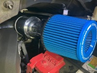 チャンバー部にはリアルカーボンが採用され、アルミパイピング部は鏡面仕上げなのでエンジンルームもレーシーに見えますね。