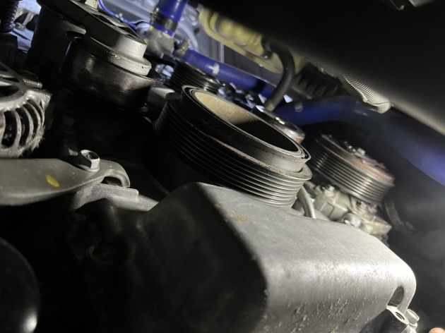 新品のクランクプーリーに交換して、新品のVベルトを取り付けました。