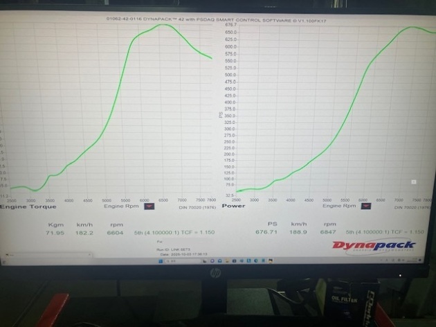 6年前はセカンダリー1700ccでブースト1.45Kで噴射量が100%になってしまい、パワー632.1PS、トルク66.3kg/mでした。