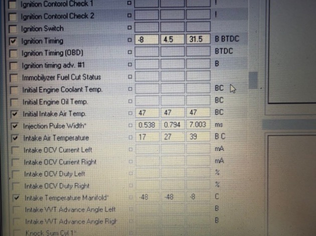 思ったようにブーストが上がらず、吸気温度が低いとブーストがかからなくなるような補正が入っているようで、ブーストDutyの吸気温度補正を調整して無事にブーストアップ出来ました。