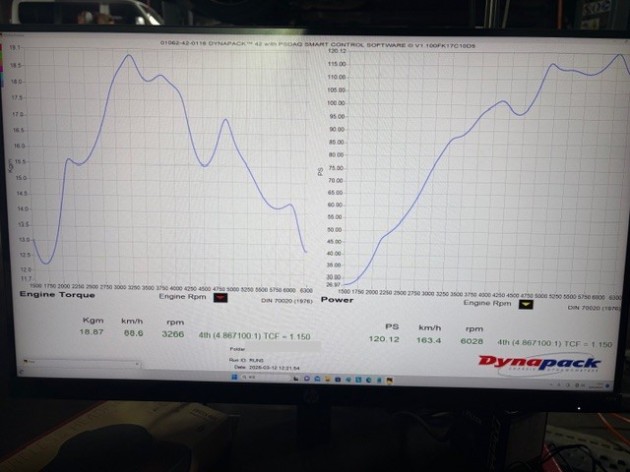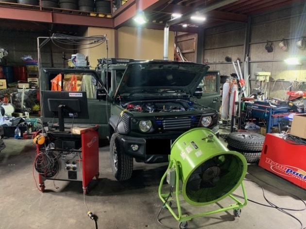 トラスト ボルトオンターボキットを装着したジムニーシエラでしたが、トラスト ハイパフォーマンスECUに書き換えてパワーチェックを行いました。