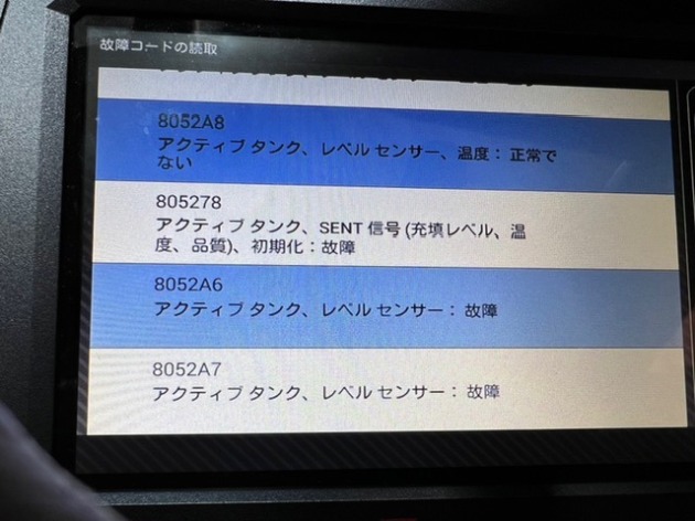 やはりアクティブタンク系統のエラーが4つ出ていました。