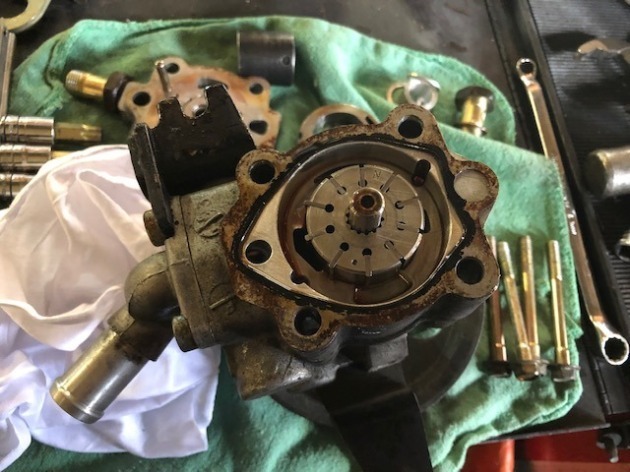 全部で10枚の羽が付いていますが、この羽を抜かないとメクラしたハイキャス配管部分に油圧がかかって、メクラ部分からオイルが漏れてきます。